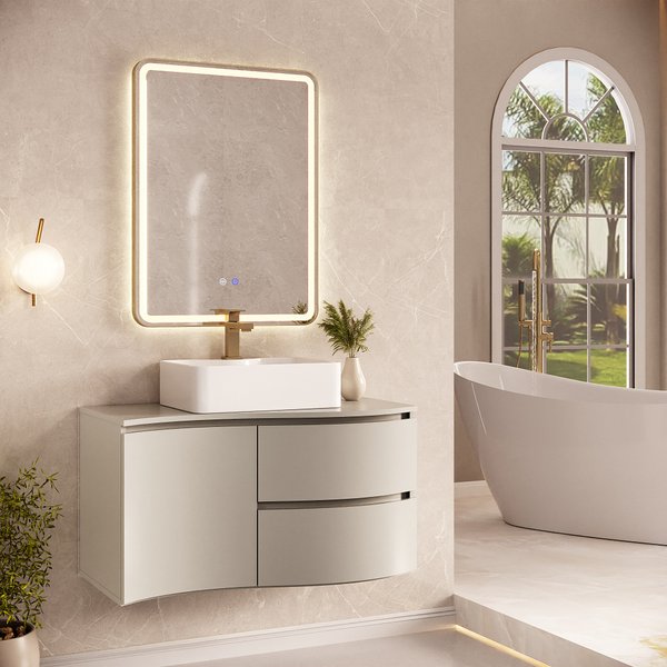 Conjunto para Banheiro Helena 90 Suspenso com Espelho LED Touch e Cuba Stella – Tecnologia e Luxo Orgânico