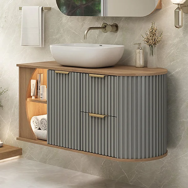 O Gabinete para Banheiro Tereza Cristina da Fabribam combina sofisticação e funcionalidade em um design moderno e elegante. Com frente ripada e revestimento em PVC, este modelo suspenso de 1 metro de largura possui um acabamento laminado de alta qualidade e bordas protegidas com fita de PVC, garantindo resistência e durabilidade.